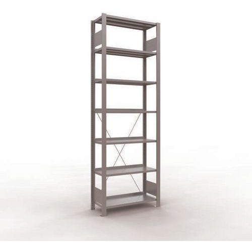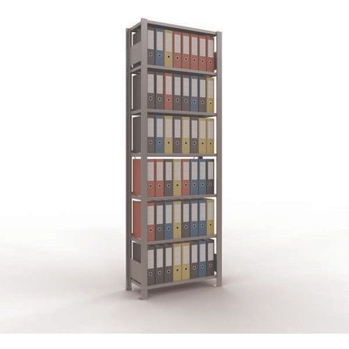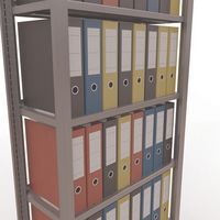 Rayonnage bureau de belle finition pour charge légère. Tablette pleine tôlée pour toutes natures d'objets. Montant plein tôlé sans perforation face avant. Barre de butée pour éviter la chute des objets. Pied de protection pour préserver les sols. Montage sans outils, par système de clip.