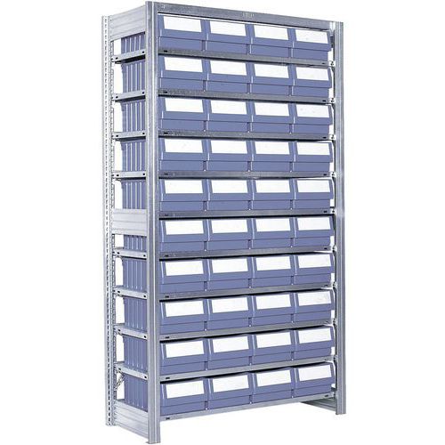 Rayonnage avec bacs-tiroirs série RK, Nb de bacs/coloris/capacité: 40/bleu-gris/300x234x140