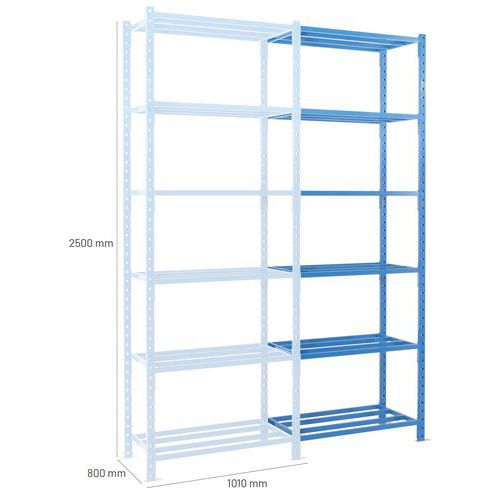 Rayonnage très stable avec capacité de charge élevée (jusqu'à 2.5 t). Étagère tubulaire pour excellente aération des objets et entretien facile. Extension aisée du rayonnage par l'ajout d'1 ou plusieurs kits suivants.