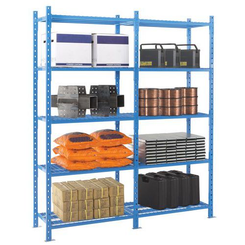 Rayonnage acier solide et stable avec grande capacité de charge. Fiable lors d’incendie : entièrement aéré avec tablettes grillagées. Rayonnage d'extension aisées avec ajout de 1 ou + éléments suivants.