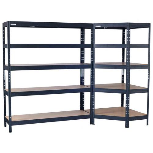| Intitulé du produit | Rayonnage d'angle anthracite, Charge maxi par tablette: 250 kg, Hauteur: 1800 mm, Nb de tablettes: 5 |