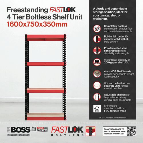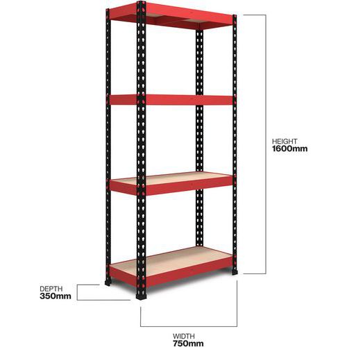| Intitulé du produit | Rayonnage de garage RB Boss 200 kg 4 niveaux H x l x P 1600 x 750 x 350 mm, Charge maxi par tablette: 200 kg |