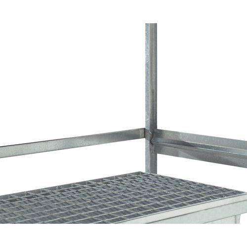 Attention, rétention galvanisée compatible produits polluants et/ou inflammables tels que solvants, peintures, hydrocarbures. Ne convient pas aux produits chimiques agressifs et corrosifs. Les charges maxi indiquées s’entendent pour un poids uniformément réparti. Possibilité d'ajouter des éléments supplémentaires et d’agrandir ainsi l’étagère par modules de 1,50 m.