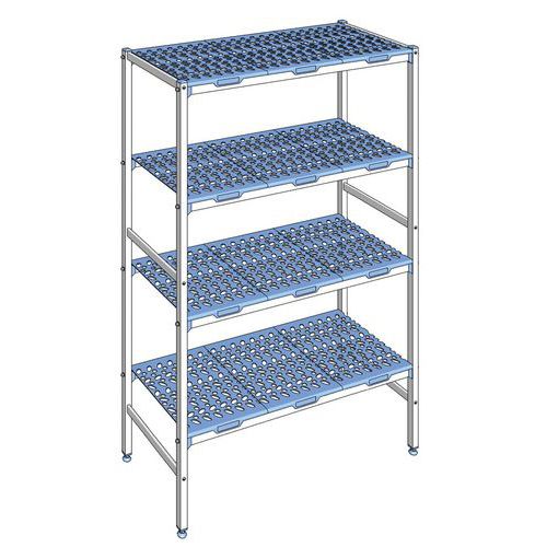 Rayonnage alimentaire facile à installer, par emboîtement, sans outils, d'entretien aisé avec clayette lavable en machine.
