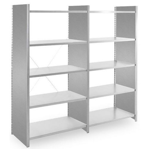 Rayonnage de bureau léger et robuste. Finition galvanisée. Structure fermée sur les côtés avec échelles pleines. Inoxydable, convient aux environnements humides. Extensible par l'ajout de 1 ou plusieurs éléments suivants.