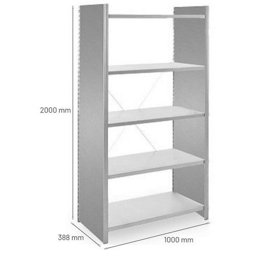 Rayonnage de bureau léger et robuste. Finition galvanisée. Structure fermée sur les côtés avec échelles pleines. Inoxydable, convient aux environnements humides. Extensible par l'ajout de 1 ou plusieurs éléments suivants.