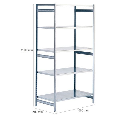 Rayonnage industriel léger de finition galva, robuste. Structure aérée avec échelles ouvertes sur les côtés. Inoxydable, convient aux environnements humides. Extensible par l'ajout de 1 ou + éléments suivants. Finition galvanisée idéale pour pièces humides et en extérieur.