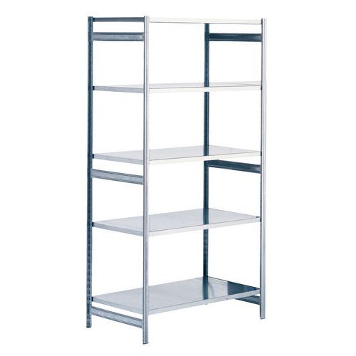 Rayonnage industriel léger de finition galva, robuste. Structure aérée avec échelles ouvertes sur les côtés. Inoxydable, convient aux environnements humides. Extensible par l'ajout de 1 ou + éléments suivants. Finition galvanisée idéale pour pièces humides et en extérieur.