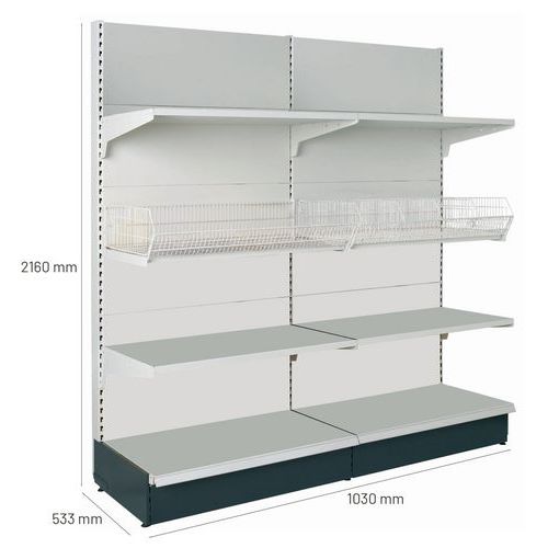 Rayonnage Gondolux, Charge maxi par tablette: 200 kg, Hauteur: 2160 mm, Largeur: 1030 mm, Profondeur: 533 mm Rayonnage Gondolux, Charge maxi par tablette: 200 kg, Hauteur: 2160 mm, Largeur: 1030 mm, Profondeur: 533 mm