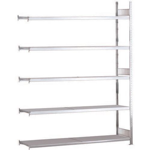 Solide rayonnage d'entrepôt à niveau plein acier tôlé. Stable sans croisillon, accessible d'un côté et de l'autre. Parfait en combinaison avec d’autres rayonnages Easy-Fix. Haute résistance à la corrosion avec finition acier galvanisé.