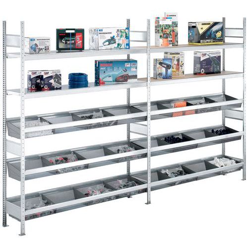 Rayonnage Easy-Fix Plus, Charge maxi par tablette: 400 kg, Tablette matériau: Acier, Hauteur: 2000 mm Rayonnage Easy-Fix Plus, Charge maxi par tablette: 400 kg, Tablette matériau: Acier, Hauteur: 2000 mm