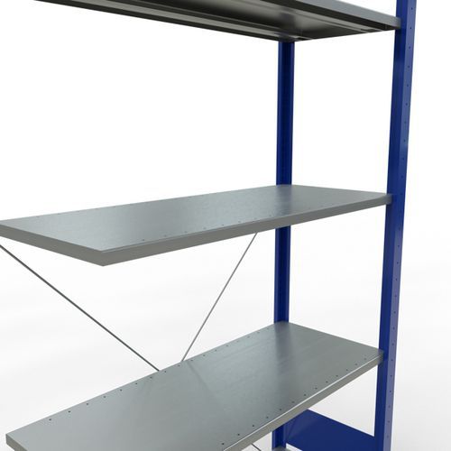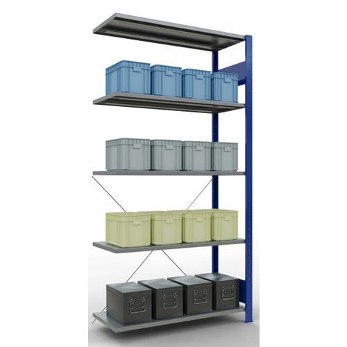 Système de rayonnage robuste et très complet avec belle finition peinte époxy, gris ou bleu. Tablettes pleines acier tôlé pouvant supporter des marchandises de multiples dimensions. Étagère industrielle facile et rapide à monter par emboîtement, sans outillage particulier. Extension de rayonnage aisée avec l'adjonction de 1 ou plusieurs éléments suivants.