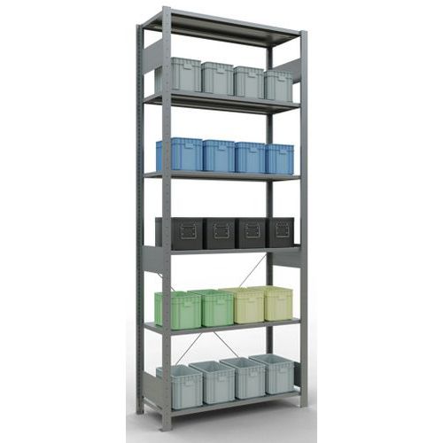 Rayonnage léger Easy-Fix, Charge maxi par tablette: 250 kg, Hauteur: 2500 mm, Nb de tablettes: 6 Rayonnage léger Easy-Fix, Charge maxi par tablette: 250 kg, Hauteur: 2500 mm, Nb de tablettes: 6