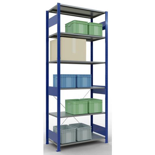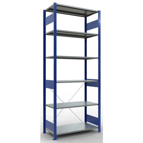 Système de rayonnage robuste et très complet avec belle finition peinte époxy, gris ou bleu. Tablettes pleines acier tôlé pouvant supporter des marchandises de multiples dimensions. Étagère industrielle facile et rapide à monter par emboîtement, sans outillage particulier. Extension de rayonnage aisée avec l'adjonction de 1 ou plusieurs éléments suivants.