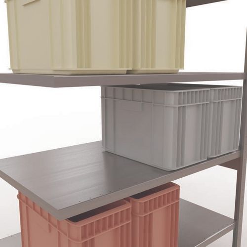 Rayonnage d'entrepôt robuste, finition galva ultra-résistante aux environnements humides. Tablettes pleines acier tôlé pouvant supporter des marchandises de multiples dimensions. Étagère industrielle facile et rapide à monter par emboîtement, sans outillage particulier. Extension de rayonnage aisée avec l'adjonction de 1 ou plusieurs éléments suivants. Distance entre les perforations : 25 mm. Hauteur de la première perforation : 50 mm.