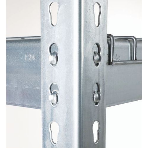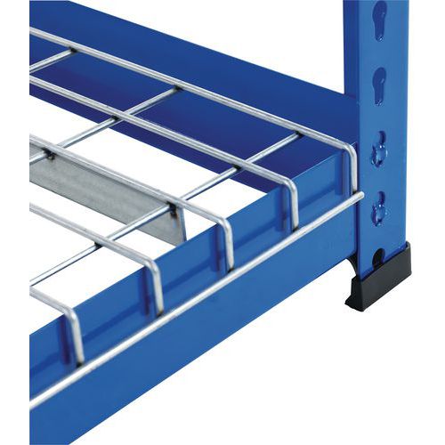Rayonnage industriel simple et ultra-robuste pour stockage des marchandises de charge lourde. Tablette grillagée idéale pour le stockage aéré et/ou en zone de stockage équipée de sprinklers. Finition zinguée pour zone humide ou peinture époxy gris/bleu pour environnement sec. Étagère d'entrepôt de montage facile, sans l'aide de techniciens et d'outils spécifiques.