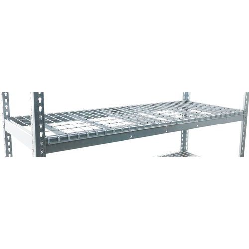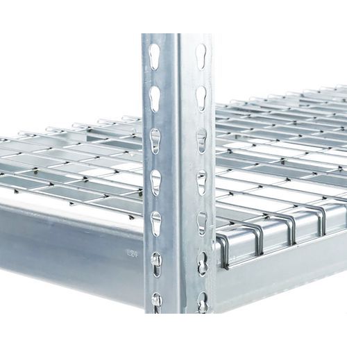 Rayonnage industriel simple et ultra-robuste pour stockage des marchandises de charge lourde. Tablette grillagée idéale pour le stockage aéré et/ou en zone de stockage équipée de sprinklers. Finition zinguée pour zone humide ou peinture époxy gris/bleu pour environnement sec. Étagère d'entrepôt de montage facile, sans l'aide de techniciens et d'outils spécifiques.