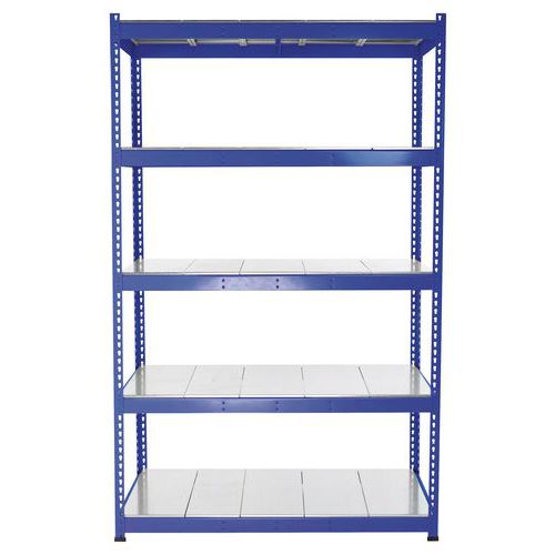 Rayonnage industriel simple et ultra-robuste pour stockage des marchandises de charge lourde. Tablette pleine acier parfaite pour l'entrepôt des pièces en vrac et/ou des produits graisseux. Finition zinguée pour zone humide ou peinture époxy gris/bleu pour environnement sec. Étagère d'entrepôt de montage facile, sans l'aide de techniciens et d'outils spécifiques.