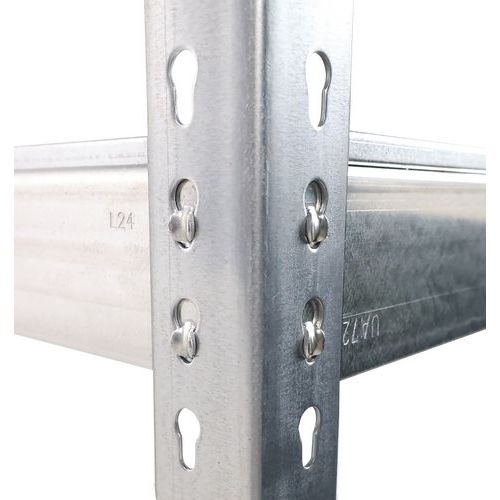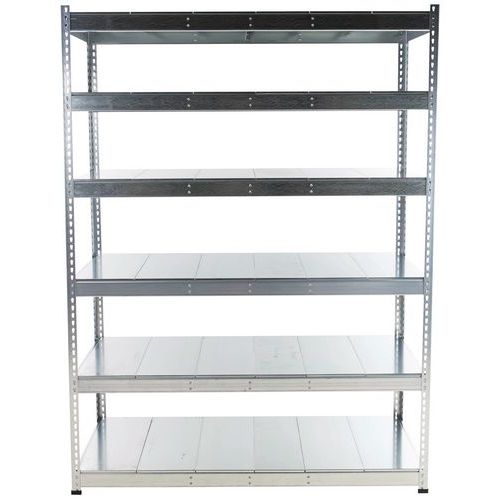 Rayonnage industriel simple et ultra-robuste pour stockage des marchandises de charge lourde. Tablette pleine acier parfaite pour l'entrepôt des pièces en vrac et/ou des produits graisseux. Finition zinguée pour zone humide ou peinture époxy gris/bleu pour environnement sec. Étagère d'entrepôt de montage facile, sans l'aide de techniciens et d'outils spécifiques.