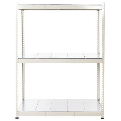 Rayonnage industriel simple et ultra-robuste pour stockage des marchandises de charge lourde. Tablette pleine acier parfaite pour l'entrepôt des pièces en vrac et/ou des produits graisseux. Finition zinguée pour zone humide ou peinture époxy gris/bleu pour environnement sec. Étagère d'entrepôt de montage facile, sans l'aide de techniciens et d'outils spécifiques.