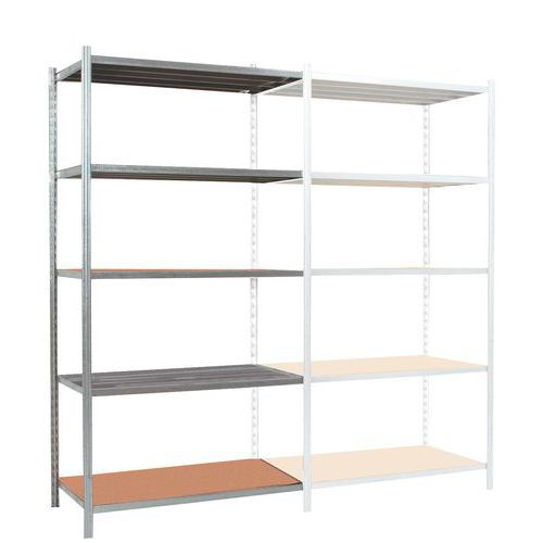 Robuste rayonnage d'entrepôt acier de structure tubulaire. Rayonnage stable sans croisillon pour un double accès (2 faces). Montant avec perforations en T (4x37 mm) non visibles en façade. Finition époxy ou galva : résistance aux chocs, aux rayures et à l'humidité. Pied plastique sous montant : bonne stabilité de l'ensemble et préservation des sols. Tablette tubulaire entièrement soudée, avec 4 connecteurs d'accroche aux extrémités. Convient idéalement aux entrepôts, garages, ateliers.