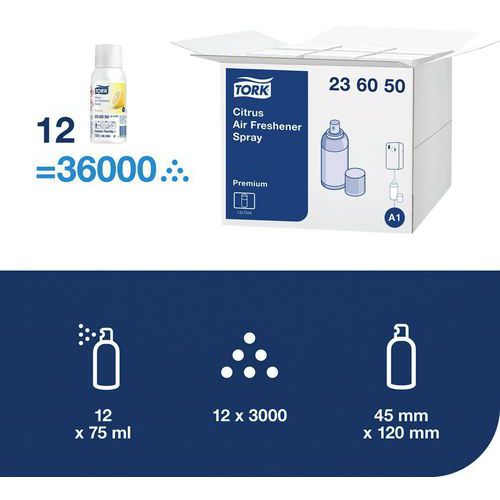 Recharge pour désodorisant automatique Tork, Conditionnement: Aérosol, Contenance: 75 mL, Parfum: Agrumes