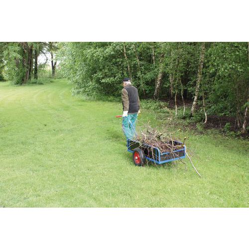 - Equipé d'un réflecteur de sécurité et d'un timon manuel vissé avec poignée en plastique.