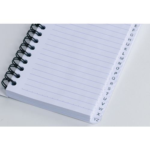 - Le répertoire offre des onglets alphabétiques plastifiés pour une meilleure résistance dans le temps.