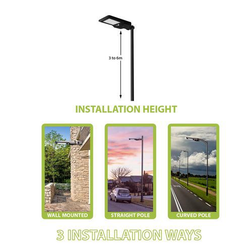 Pouvant être installée sur un mât ou fixée au mur, cette puissante lampe solaire d'extérieur vous garantit 4800 lumens.