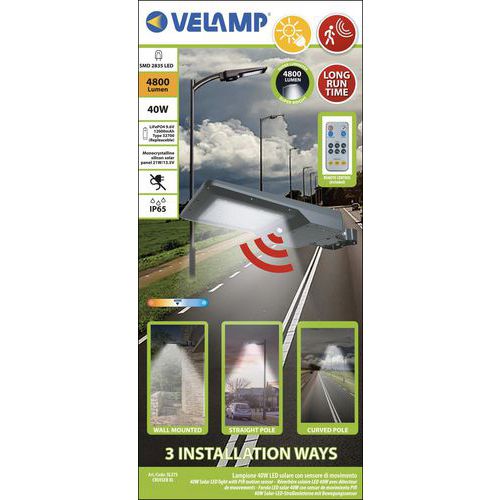 Réverbère solaire 40W avec détecteur de mouvements - Velamp