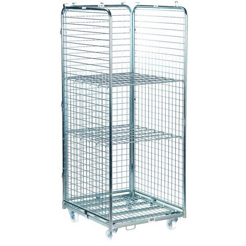 Roll conteneur acier 3 côtés et 2 étagère, Force: 400 kg, Hauteur hors tout: 1815 mm