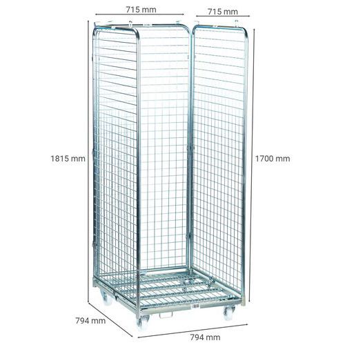 Roll-conteneur, Force: 400 kg, Hauteur hors tout: 1815 mm, Longueur hors tout: 794 mm, Nb de côtés: 3