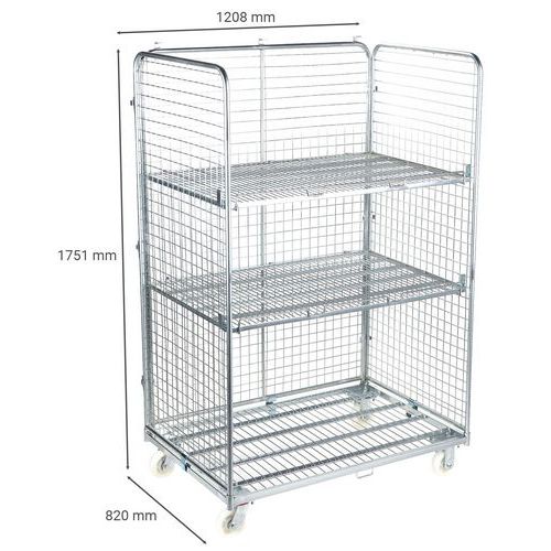 | Intitulé du produit | Roll-conteneur maxi 3 cotés, Force: 600 kg, Hauteur hors tout: 1751 mm, Longueur hors tout: 1208 mm |