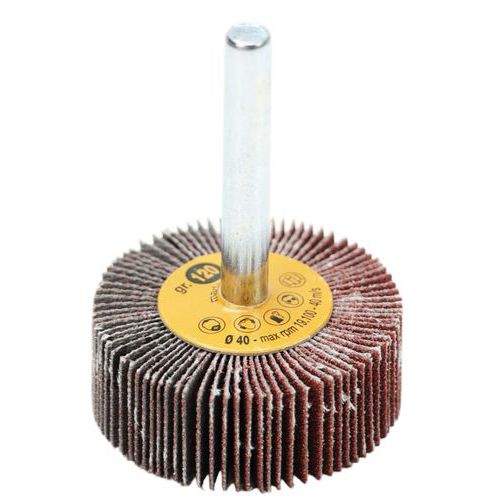 - Roue à lamelles sur tige, pour un usage de nettoyage et finition multi-matériaux.