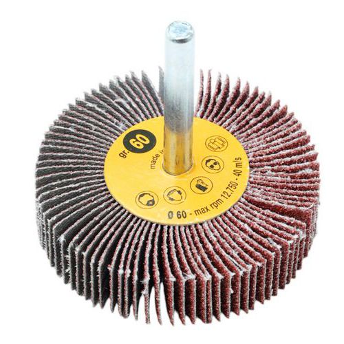 - Roue à lamelles sur tige, pour un usage de nettoyage et finition multi-matériaux.