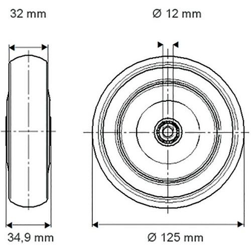 Roue caoutchouc plastique Supratech Capacité de 50kg à 100 kg, Charge maxi: 100 kg, Ø: 125 mm