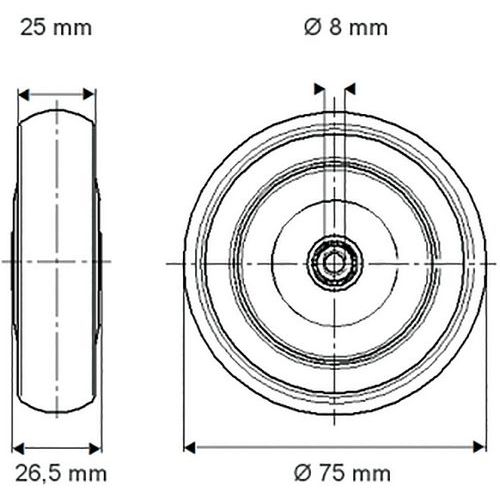 Roue caoutchouc plastique Supratech Capacité de 50kg à 100 kg, Charge maxi: 75 kg, Ø: 75 mm