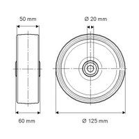Roue polyamide, Charge maxi: 1400 kg, Ø: 125 mm, Roue/roulette: Roue, Roue/roulette force (Plage): 1001 kg +