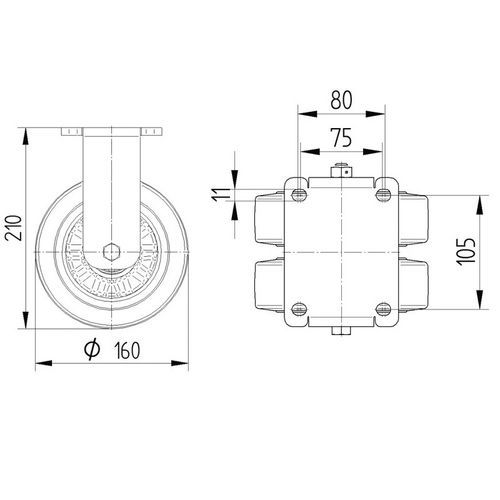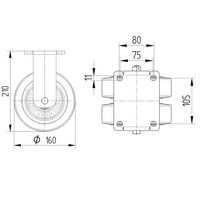Roulette aluminium fixe, Charge maxi: 1500 kg, Ø: 160 mm, Roue/roulette: Roulette
