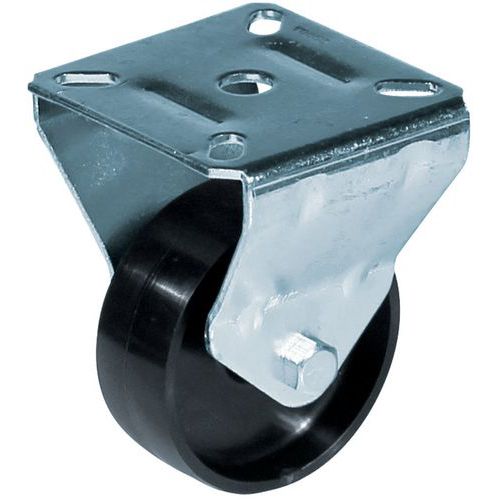 - Roulette fixe avec axe rivé et cadre en tôle d'acier zinguée.