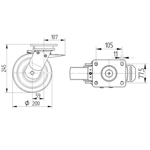 Roulette fonte pivotante, Charge maxi: 1200 kg, Ø: 200 mm, Roue/roulette: Roulette