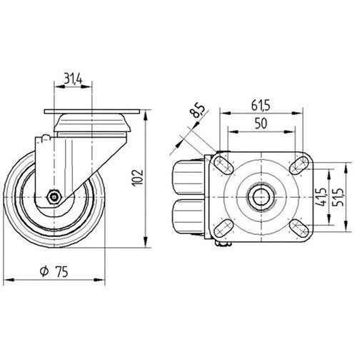 Roulette jumelée pivotante Capacité de 60 kg à 100 kg, Charge maxi: 100 kg, Ø: 75 mm, Roue/roulette: Roulette