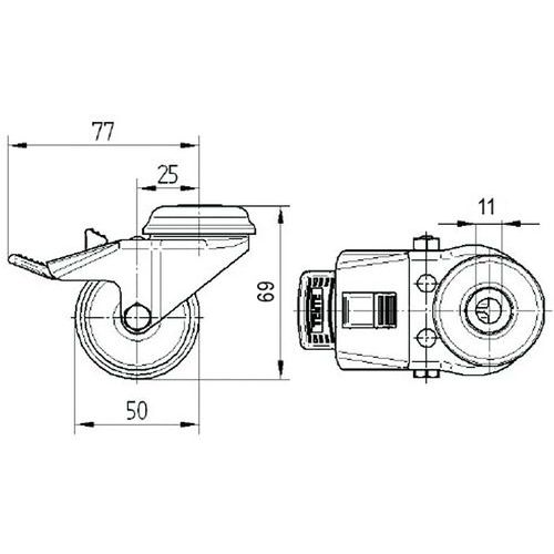 Roulette jumelée pivotante fixation à œil capacité 70 kg - TENTE