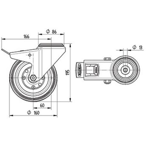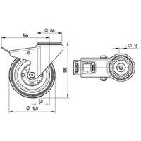 Roulette pivotante à blocage total Capacité de 150 kg à 200 kg, Charge maxi: 200 kg, Ø: 160 mm