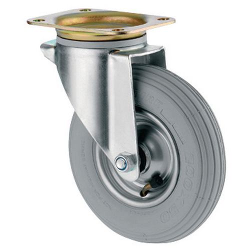 Roulette pivotante à platine - Force 75 à 200 kg - Bandage pneumatique