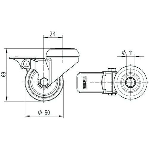 | Intitulé du produit | Roulette pivotante Agila simple frein de roue trou de fixation, Charge maxi: 40 kg, Ø: 50 mm |