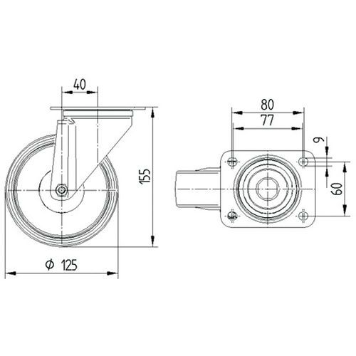 Roulette pivotante Alpha avec fixation automatique à 180 °, Charge maxi: 250 kg, Ø: 125 mm