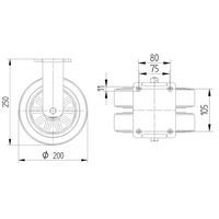 Roulette polyamide fixe, Charge maxi: 1500 kg, Ø: 200 mm, Roue/roulette: Roulette