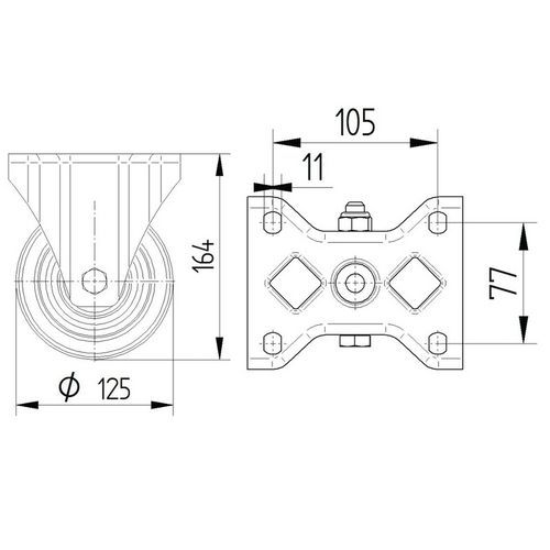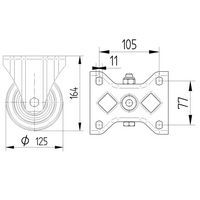 Roulette polyamide fixe, Charge maxi: 1400 kg, Ø: 125 mm, Roue/roulette: Roulette