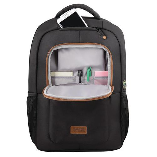 Sac à dos nylon recyclé pour ordinateur, Coloris: Noir, Convient pour PC: 14 , Hauteur hors tout: 44 cm